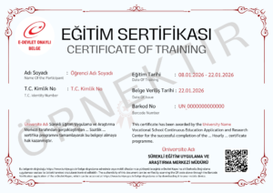 Eğitimi başarıyla tamamlayan katılımcılara E-Devlet onaylı, E-Devlet üzerinden görüntüleyebilecekleri